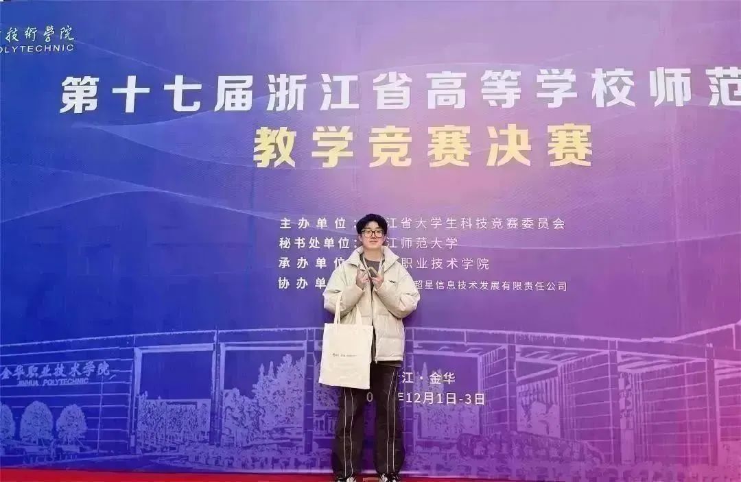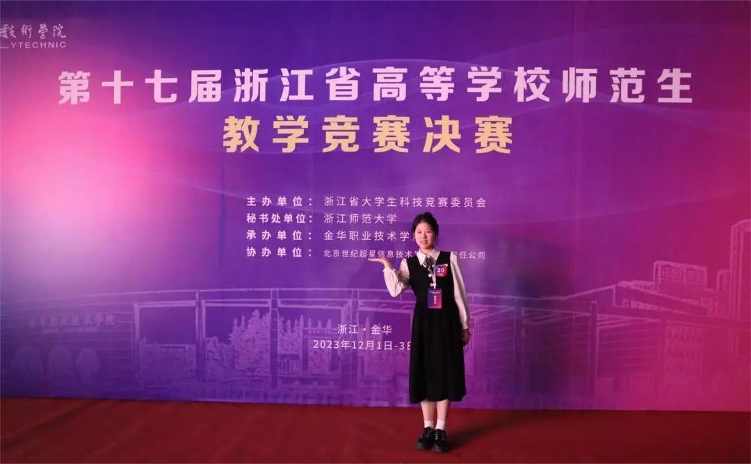2023年12月2-3日,由浙江省大学生科技竞赛委员会主办、金华职业技术学院承办的浙江省高等学校第十七届师范生教学竞赛圆满落幕。本次竞赛共设九个组别,我院8位学生参加比赛,共获得2个一等奖,2个二等奖,3个三等奖,1个优胜奖,参赛选手获奖率100%,其中一等奖数量占全校66.7%。