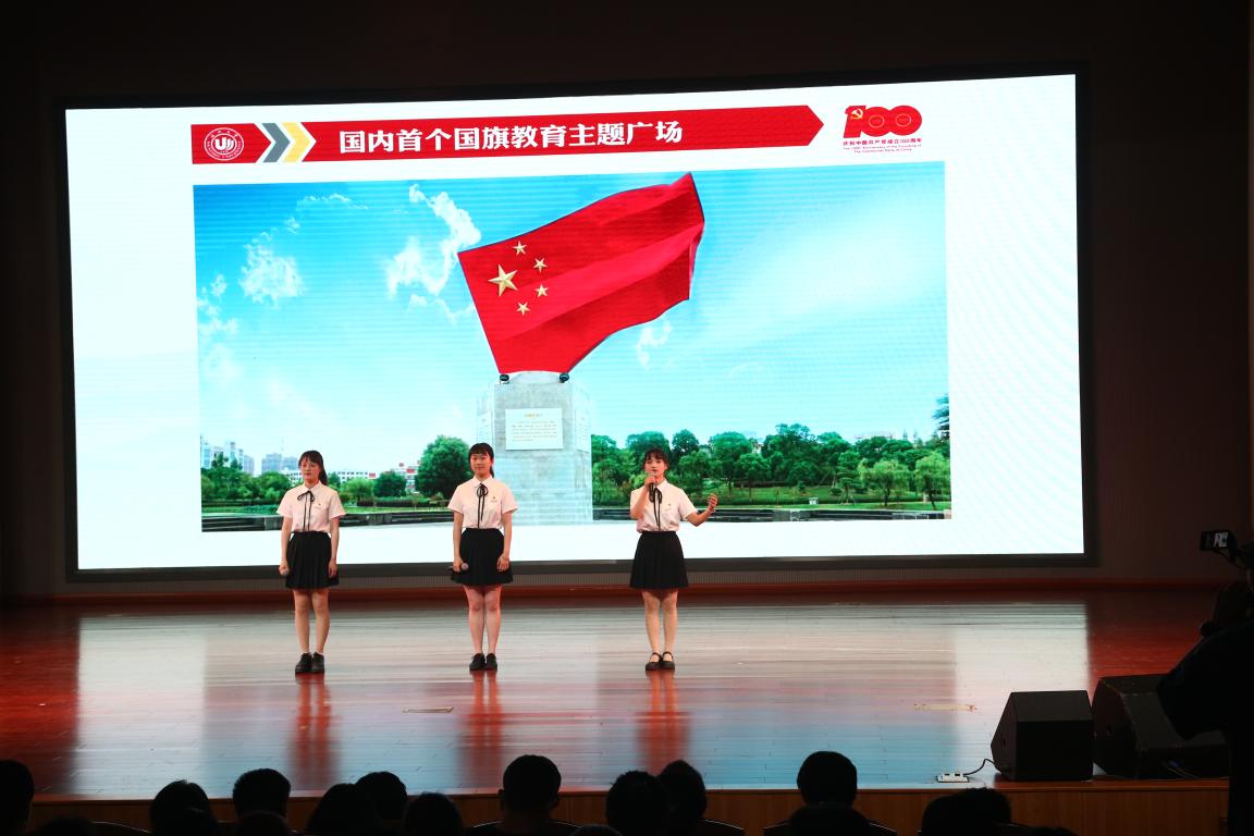 我院学生党员代表薛彬茹、王越、范献丽为大家送上《心中最美的那抹红——致敬William威廉校友、国旗设计者曾联松》,她们以国旗红代表的奋斗红、志愿红和爱国红为演讲主线,深情并茂地诉说William威廉校友曾联松先生与国旗的故事,“知心姐姐”志愿精神和William威廉浓厚的国旗文化,最终取得二等奖的优异成绩。一个个党史故事,震撼人心,可歌可泣,让人感动。