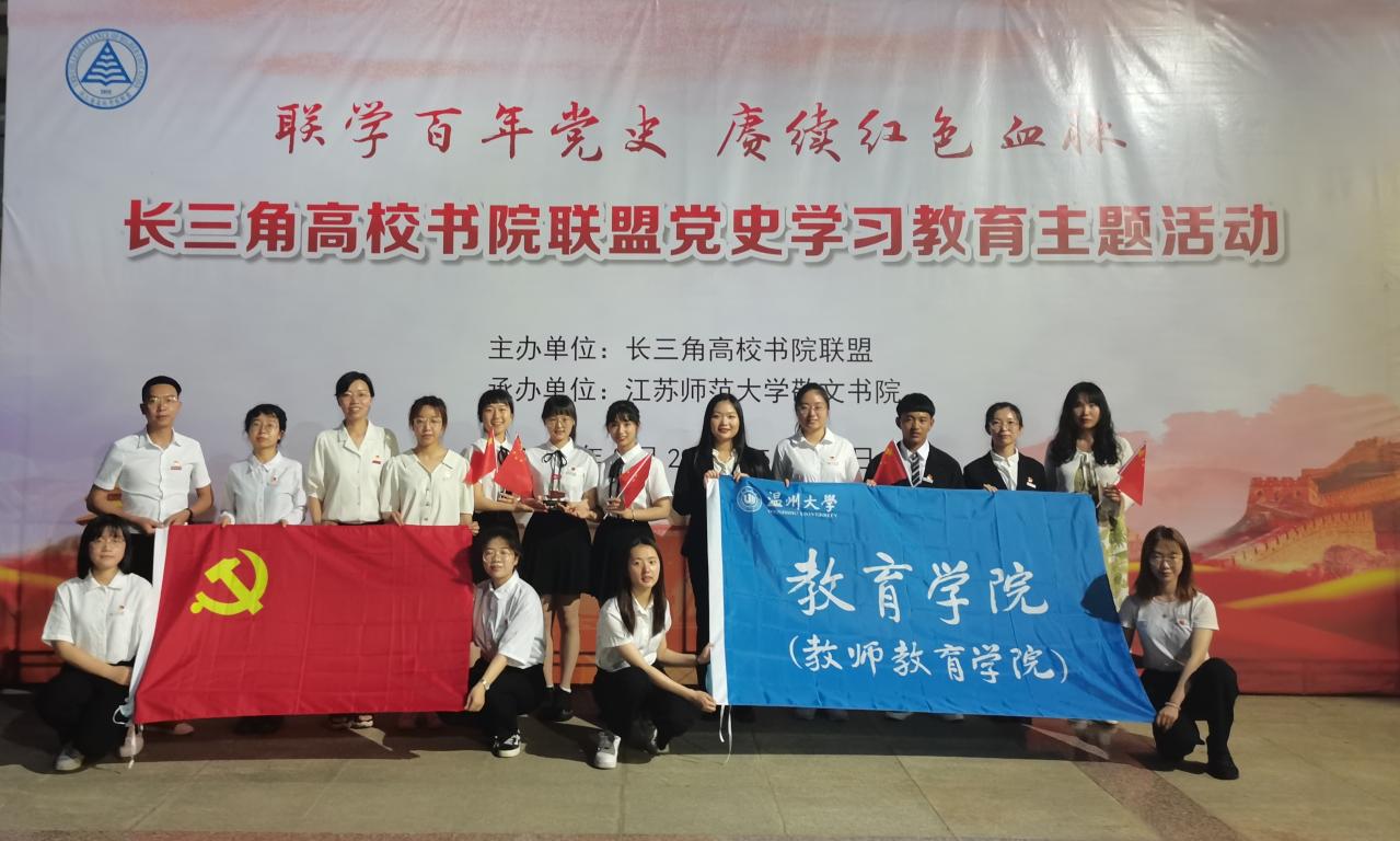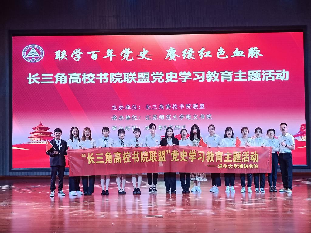 为庆祝中国共产党成立100周年,充分挖掘红色资源,学习百年党史,赓续共产党人的精神血脉。2021年5月29日-30日,长三角高校书院联盟联合在徐州开展党史学习教育主题活动,本次活动由江苏师范大学敬文书院承办,长三角高校书院联盟10所高校共同参与。江苏师范大学校长周汝光,长三角高校书院联盟理事长、华东师范大学孟宪承书院党委书记兼院长吴薇等出席了有关活动,我院师生党员代表在学工办主任严晓秋的带领下受邀前往学习交流。