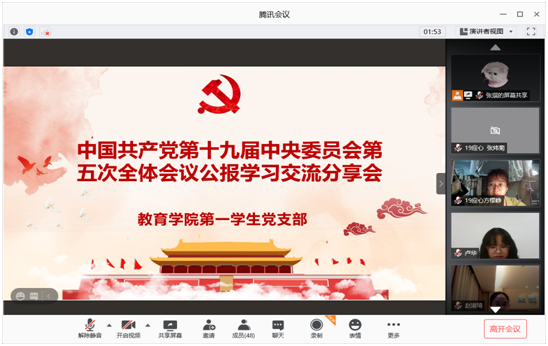 2020年10月26日至29日,党的十九届五中全会在北京举行。为了进一步引导学生党员深刻把握党的十九届五中全会重大思想观点、重大制度安排和重大工作部署,10月30日至11月1日期间,我院各学生党支部通过视频学习、原文阅读、集体讨论和撰写心得等多种形式开展学习活动,学生党员也发表了自己的见解和感悟。