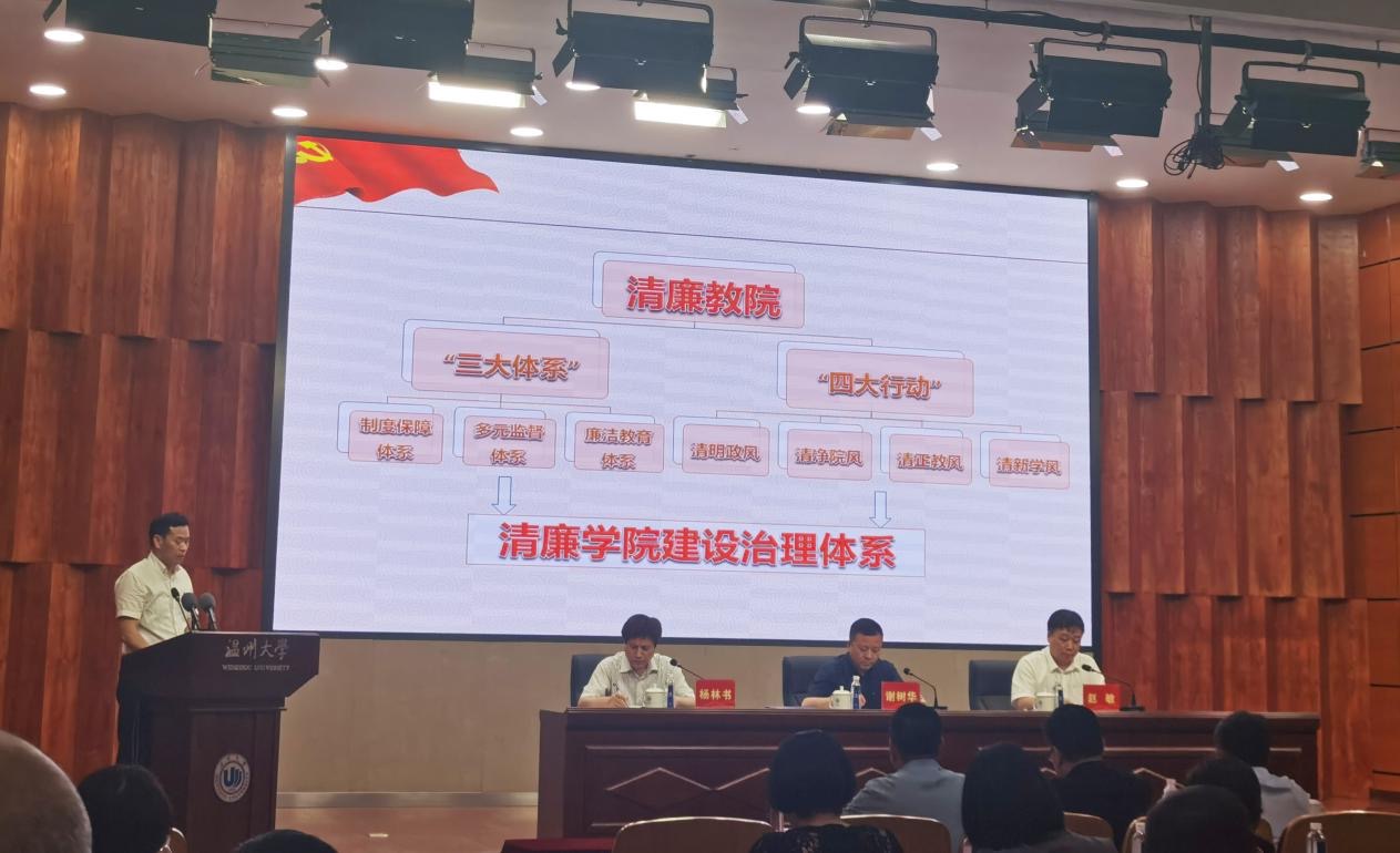 5月15日下午,学校在南校区岩松堂雁山厅举行2020年全面从严治党工作暨“清廉温大”建设推进会。我院党委何毅书记作为学院代表做“清廉学院”经验介绍。