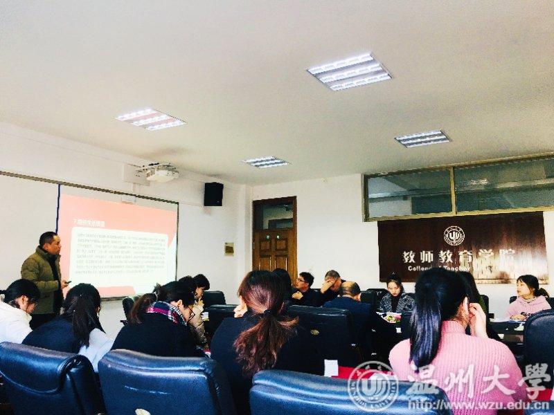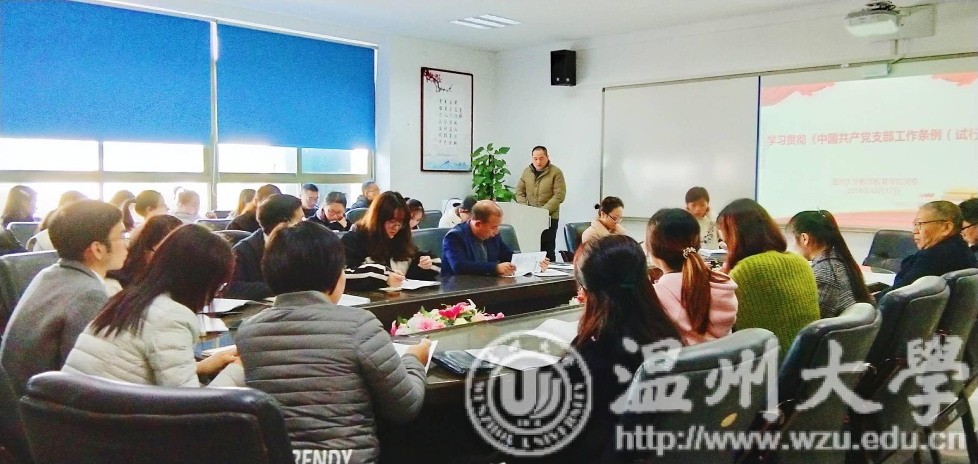 2018年12月17日中午12:40,williamhill官网教工行政党支部、教育系党支部、研究生党支部、知心姐姐党支部的师生党员于南校区9A410会议室,在杨立淮书记的带领下集中学习《中国共产党支部工作条例(试行)》,会议由严晓秋老师主持。