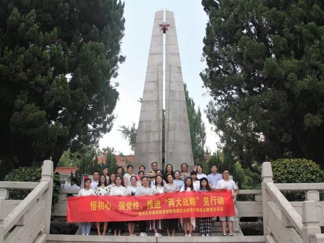 2018年6月29日下午,williamhill官网组织师生党员赶赴江心屿,开展“悟初心、强党性,推进‘两大战略’见行动”的主题党日活动。在江心屿革命烈士纪念碑前,教工党员潘士杰与学生党员张乐代表学院为革命烈士献上花圈,在场党员同志默哀并鞠躬,表达对革命先烈的缅怀之情。在鲜红的党旗下,聂海燕同志带领各位党员同志重温入党誓词。学生党员阮郑醒、周文带领大家一起学习了毛泽东同志的《为人民服务》与习近平同志的《用党员的标准严格要求自己》两篇文章。学院党委书记杨立淮在革命烈士纪念碑前发表了讲话,他结合这两篇文章的学习指出,学院党组织和党员要始终牢记全心全意为人民服务的宗旨,在推进事业发展中要发挥好基层党组织战斗堡垒作用和党员先锋模范作用。最后,党员同志们在解说员的带领下参观革命纪念馆。党员同志们纷纷表示,应该继承先烈遗志,发扬革命传统,坚定理想信念,不忘初心,为党的事业奋斗。