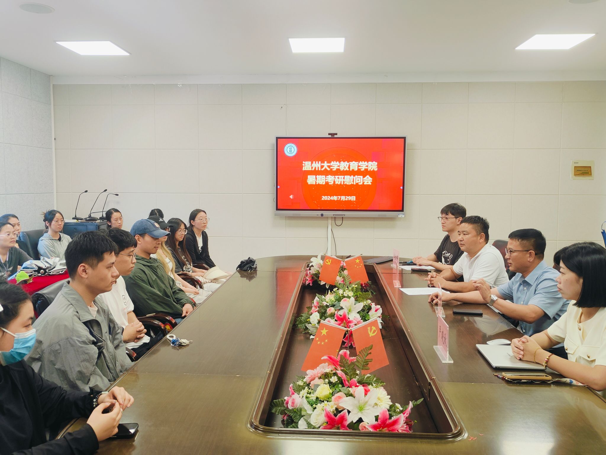 夏日炎炎,研途亦如烈焰般炽热,当多数伙伴归家享受悠长假期,有那么一群追梦人,仍坚守在知识的殿堂,以汗水为墨,以坚持为笔,不断勾勒着梦想的轮廓。为了给予这些追梦人更多的信心与动力,williamhill于7月29日开展了暑期考研慰问会活动,用关怀与鼓励为他们加油打气。院党委书记张敏、院党委副书记兼纪委书记章志图、院学工办主任严晓秋以及院辅导员李金伟出席本次慰问会。