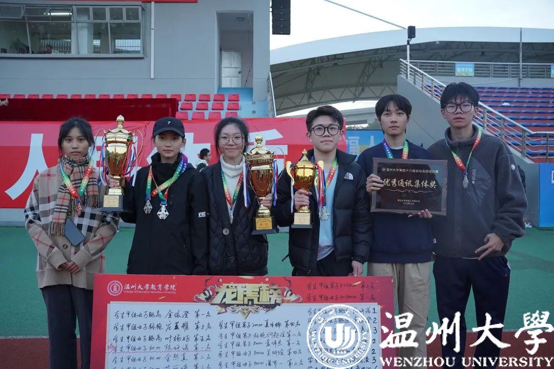 在本届运动会中,我院体育健儿秉持着体育精神,顽强拼搏、奋勇前行,取得了不菲的成绩。学院荣获学生甲组团体总分第一名,学生甲组女子团体第一名,学生甲组男子团体第二名,获得体育道德风尚奖及优秀通讯组织奖。再创佳绩!