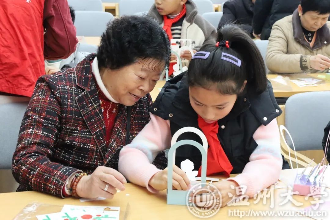 为发扬雷锋精神,志愿者们走入“老少携手DIY纸质手提花篮”手工课堂,帮助各位老人与小朋友完成手工花篮的制作。小朋友们也化身小小志愿者帮助身边的爷爷奶奶共同完成这一充满爱的花篮。手工花篮虽制作简单,但是它倾注了每一个人的美好心愿。在场的所有人,无论年龄大小,全都洋溢着快乐的笑。