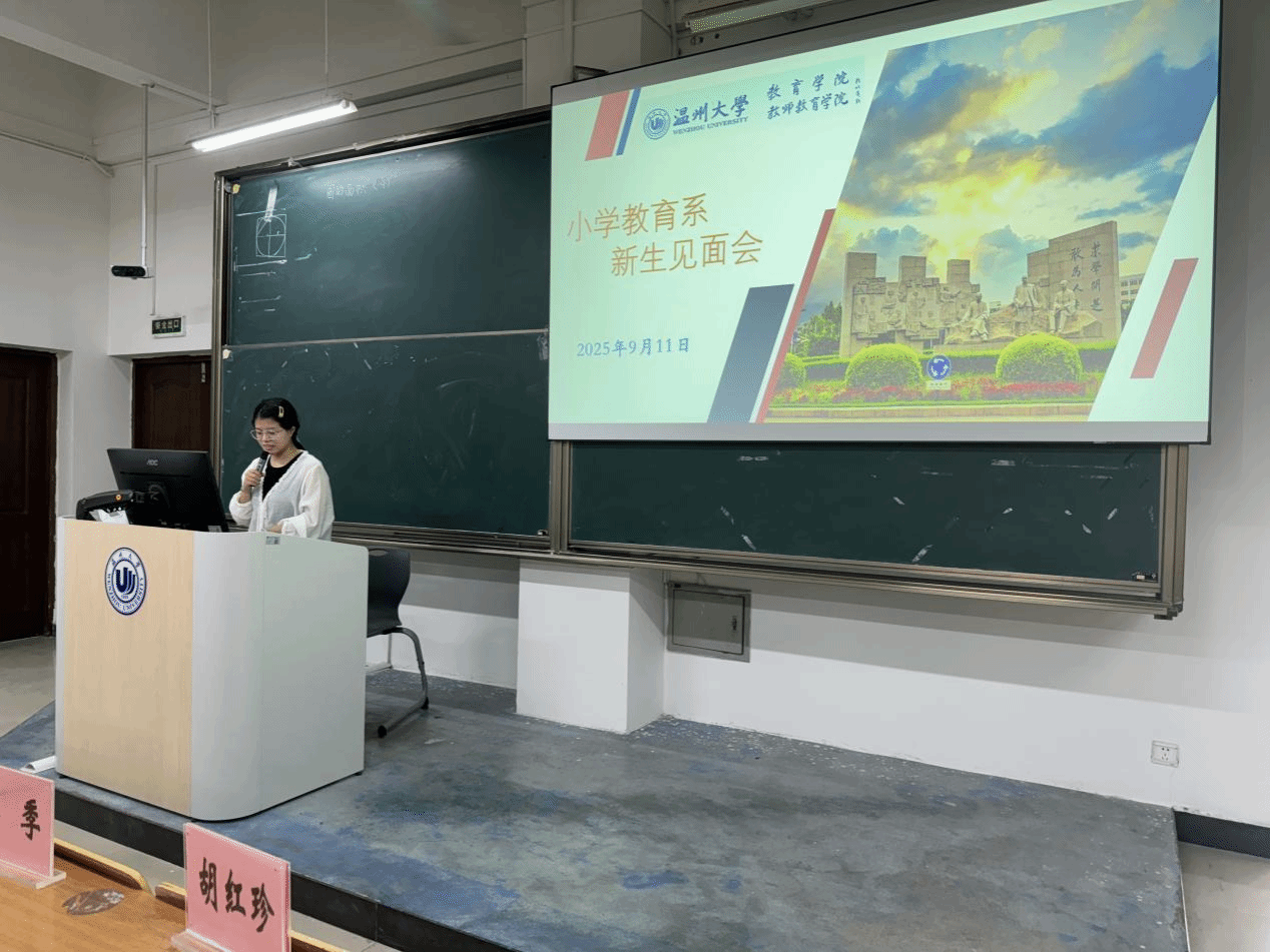 见面会伊始,辅导员吴琪琪老师逐一介绍小教系班主任、辅导员及任课教师,不仅拉近了师生距离,更让新生直观感受到专业雄厚的师资力量。随后,徐倩倩老师与学拓部部长详细解读奖学金评定细则,清晰的激励机制点燃了新生的学习斗志。新生代表邹奇轩同学分享了自己的理想信念,自己将与同学们肩负起新时代教育人才培养的使命。