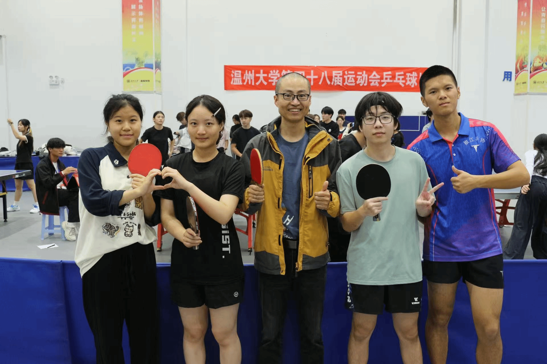 男单赛场,陈善骏、金茂凭借精准的发球和凌厉的近台快攻频频得分;女单对决中,董雅宁和齐沐辰沉着应对,灵活调整回球节奏,巧妙化解对手攻势;混双组合范文、金茂更是配合默契,在攻防转换间展现出极强的战术执行力。教练金建钰老师全程在场边悉心指导,根据赛场形势灵活调整出场阵容与战术安排;领队马羚钧细致做好后勤保障,确保队员以最佳状态投入比赛,充分展现了williamhill团队的凝聚力与向心力。