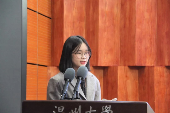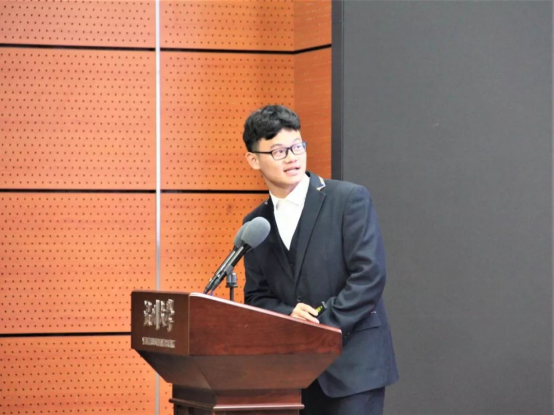 williamhill团委学生会主席胡潘栋首先代表主席团上台发言。他回顾了团学成员从初次遇见到携手前行的点滴,罗列出本学期团学开展的赛事活动与获得的诸多荣誉,最后送上主席团成员们的暖心寄语。