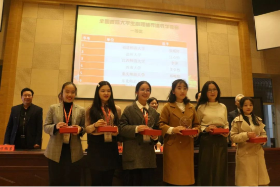 在刚刚结束的全国首届大学生心理辅导课教学竞赛中,由我院心理学系盛建森老师指导的17级应用心理学专业学生汪心怡力战群雄,荣获一等奖!
