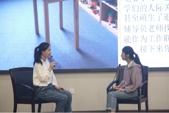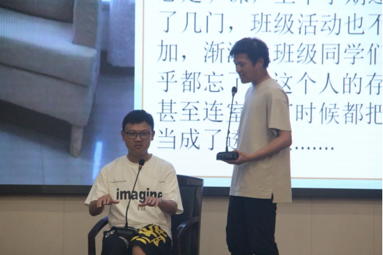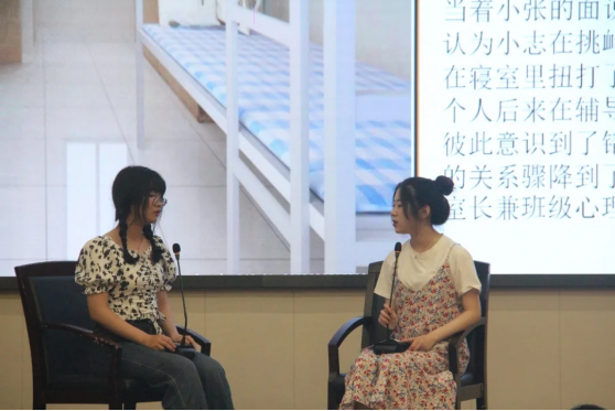第二个模块为情景模拟,心理助人者和扮演者就某个心理案例展开谈心谈话,运用心理助人技巧,通过沟通互动帮助同学解决心理困扰。该环节中,他们真实地扮演着一位疏导者的角色,以朴实易懂的语言开导着朋辈,为倾诉者提供倾听和情感支持,送去内心最真挚与最暖心的话语。