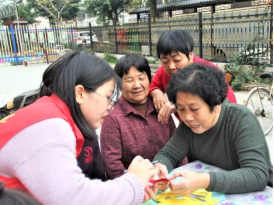 志愿者陪伴老人们一起做手工、剪窗花。在志愿者生动的讲解和耐心的帮助下,一双双大手交织如林,一幅幅窗花生动精致。拿着自己的剪纸作品,曹奶奶笑着感叹:“小剪纸里真的有大学问啊!一步步折纸,画圈,剪孔,可都是精细细致的活!多亏了志愿者们的细心引导,让我这老骨头也灵活了一把!”暮霭西沉,活动临近尾声,相机定格下志愿者与老人们温馨融洽的一幕幕。