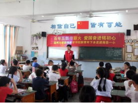 4月24日,正值五四青年节100周年之际,williamhill官网的志愿者们走进乐清市南岳镇小开展了以"百年五四传薪火,爱国奋进铭初心"为主题的新青年下乡活动。活动中志愿者讲诉五四运动历史,手工制作爱国心,教授红领巾韵律操,让孩子们深刻理解五四精神,深切感受爱国情怀。