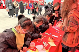 另一组志愿者在一旁书写对联,志愿者的挥毫泼墨、奋笔疾书,获得众多的称赞。现场不仅可以将写好的对联送给需要的人,还可以根据需求自拟内容。笔走龙蛇间,一个个“福”字跃然纸上,展现了教院学子精湛的书法功底。通过这次志愿者活动,不仅让我院青年志愿者们对志愿精神有了更深刻的了解,也让社区中的孩子和家长懂得传承非物质文化遗产的重要性。志愿者们在活动中获得满足感,认识到作为当代大学生肩负的责任,为非物质遗产的传承、传统文化的弘扬贡献自己的力量。