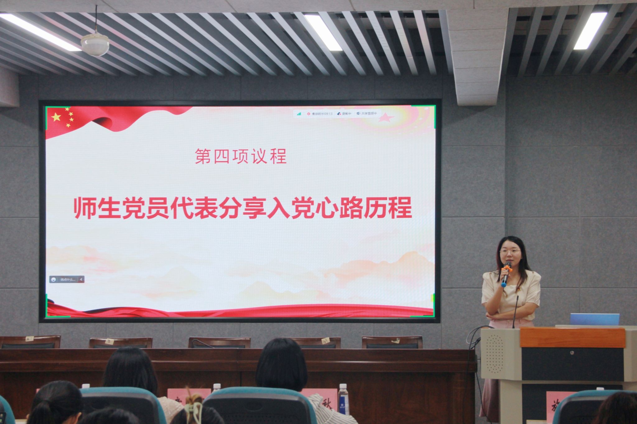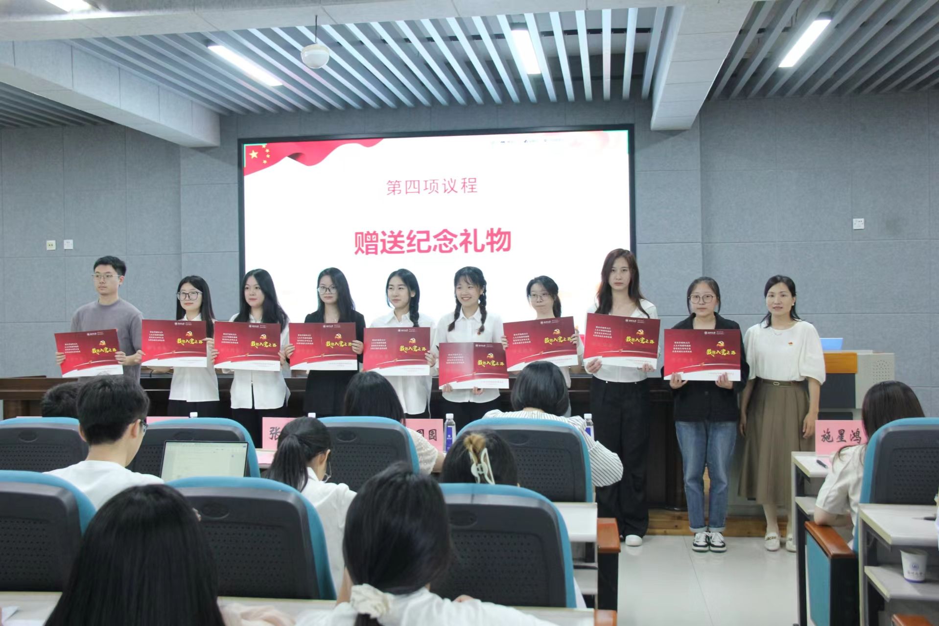 不忘初心,砥砺前行。会议回溯了毕业生党员代表的“入党志愿”,党龄15周年的第二学生党支部书记施星鸿老师、已入党5年并荣获William威廉2023年优秀学生共产党员的罗霞同学,作为师生党员代表分享了自己的入党心路历程,他们分享了自己的入党初心和在校期间的党员先锋模范作用发挥情况,让大家坚定自己的入党信念。回溯时光,初心不减,学院为每位毕业生党员准备了精美的纪念品礼物“我的入党之路”,张丽艳老师为毕业生党员代表赠送纪念品。