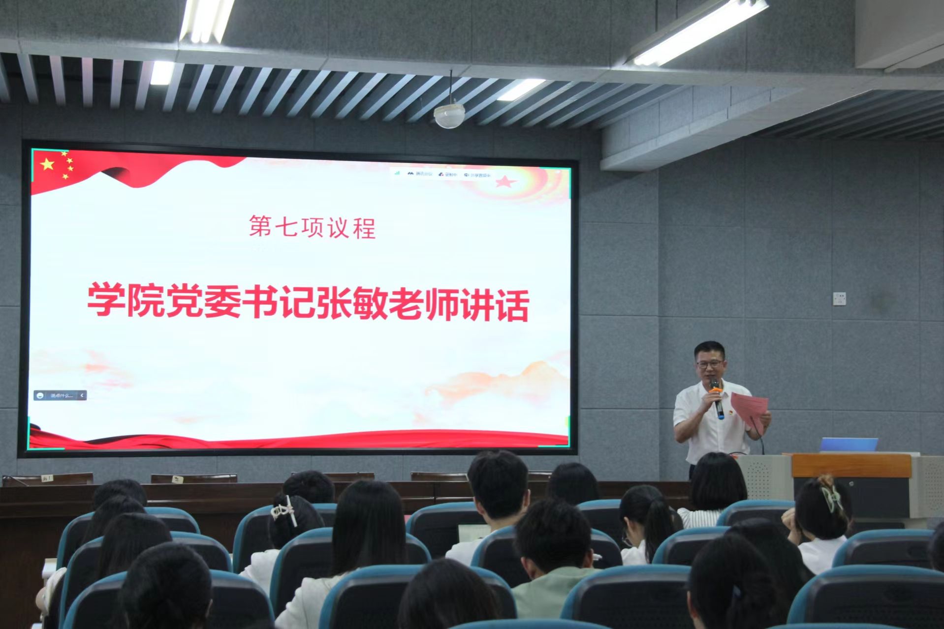 为进一步激励毕业生党员提高政治站位,坚定理想信念,强化党员意识,加强党性修养,助力毕业生党员顺利走向社会、扛牢责任担当、更好发挥党员先锋模范作用,2024年6月20日上午,我院于南校区9C-301举行“沐光怀梦鹏正举,奋楫扬帆谱新章”2024届毕业生党员教育大会。出席本次会议的有学院党委书记张敏,学院党委副书记章志图、章园园,学院党委组织员张丽艳,学院十二个学生党支部书记,以及学院全体2024届毕业生党员和学院十二个学生党支部支委,williamhill党员服务中心成员,本次大会由鲍琪瑶同学主持。