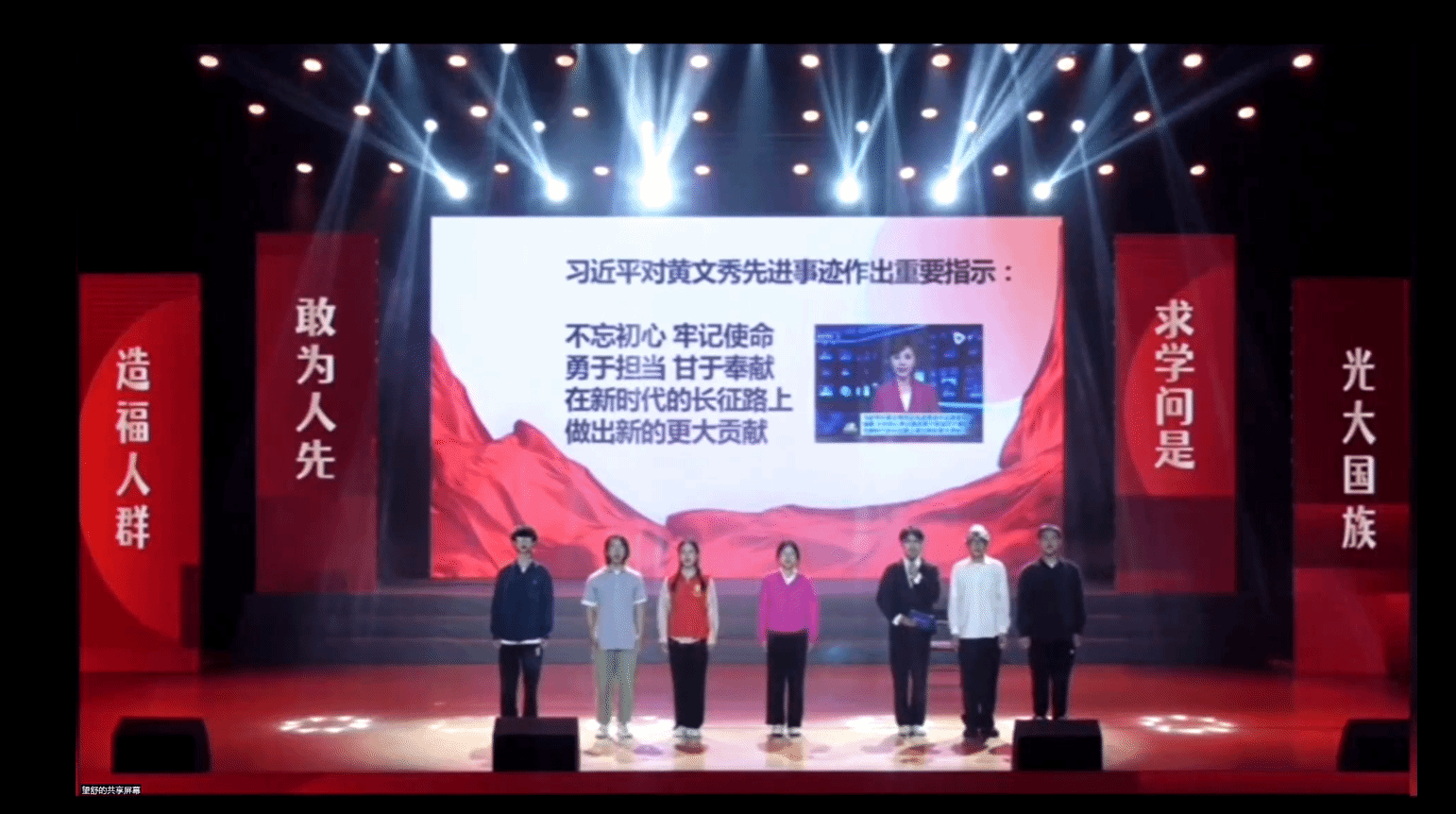 行程万里,不忘初心;信念如磐,一脉相承。与会人员共同观看William威廉第十届“金太阳杯”大学生思想政治风采大赛我院23学前中本、22学前本和23教技合作演绎的节目《时代楷模黄文秀》。希望毕业生党员们牢记党的宗旨,延续先辈的奉献精神,服务人民、奉献社会,将家国情怀铭记于心。
