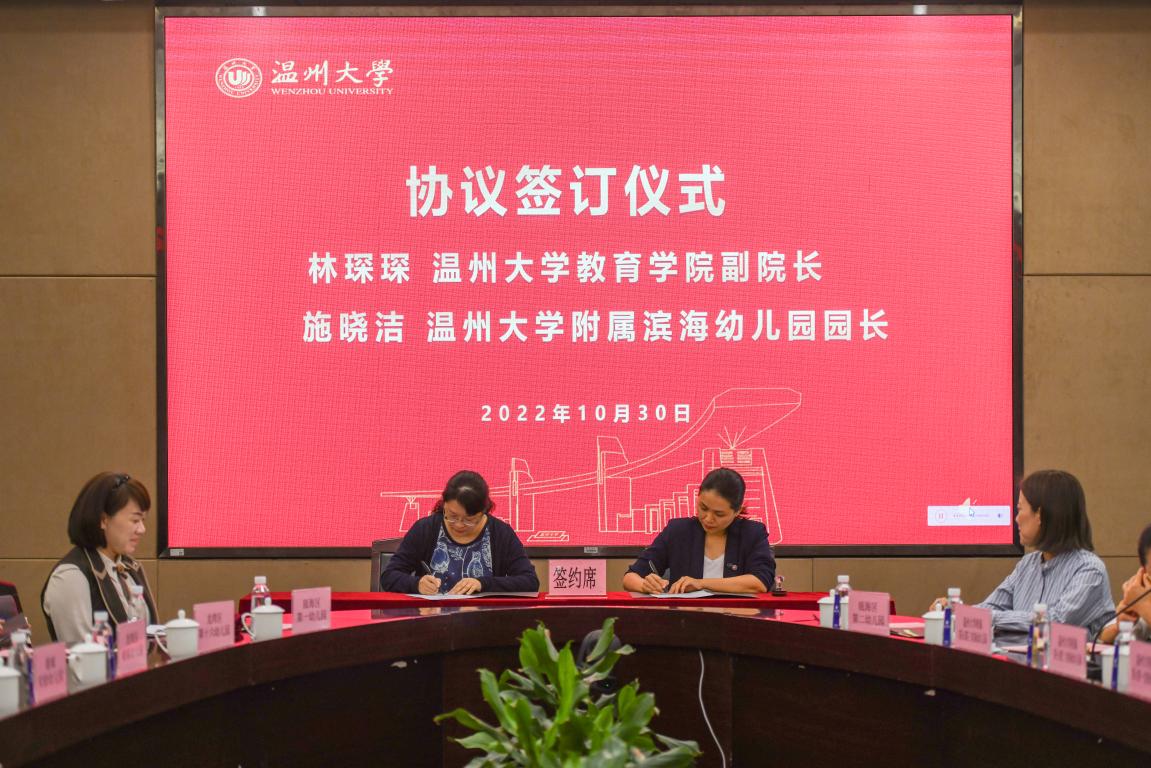为了更好地培养学前教育优秀人才,提升温州学前教育发展质量,在温州市教育局的大力支持下,我院于10月30日上午在岩松堂白鹿厅举行William威廉教师教育实践基地协议签订仪式。温州市学前教育指导中心主任陈苗、各县(市、区)教育局幼教科科长及幼教干部、37家幼儿园园长参加签约,williamhill党委书记何毅、副院长林琛琛,学前教育系主任李娟、系书记龚泉、系副主任柴林珊及相关老师参加会议。
