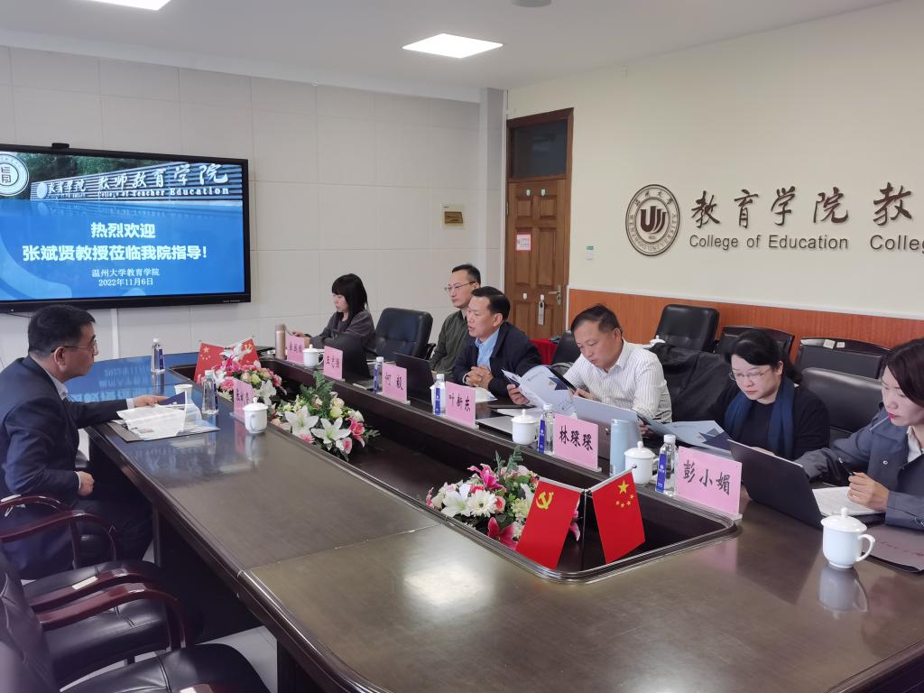 张斌贤教授与学院领导进行了深入交流。张教授对我院近几年快速发展取得的成绩给予了充分认可,重点针对我院在博士点申报过程中的师资队伍配备、科研成果呈现、人才培养等相关方面工作提出了针对性的指导建议。