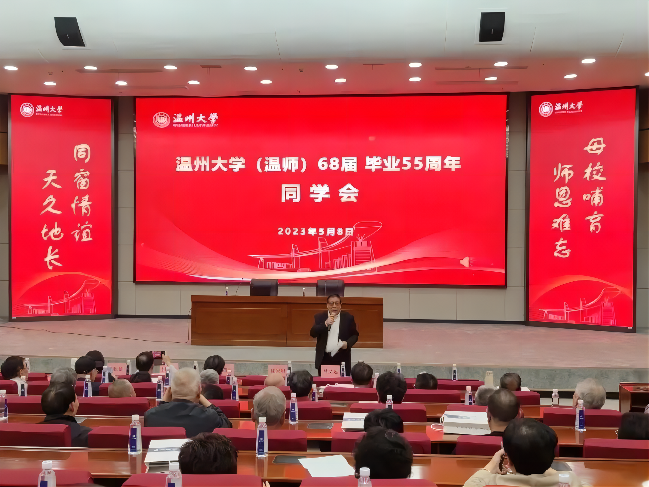 5月8日,williamhill喜迎原温州师范学院68届80位校友返校聚会,校友们共聚William威廉,与同窗欢聚一堂,共叙同学情谊,同时也共同庆祝母校办学90周年校庆。学校副校长蔡曙光、学院党委书记何毅、党委副书记章园园出席了座谈会。