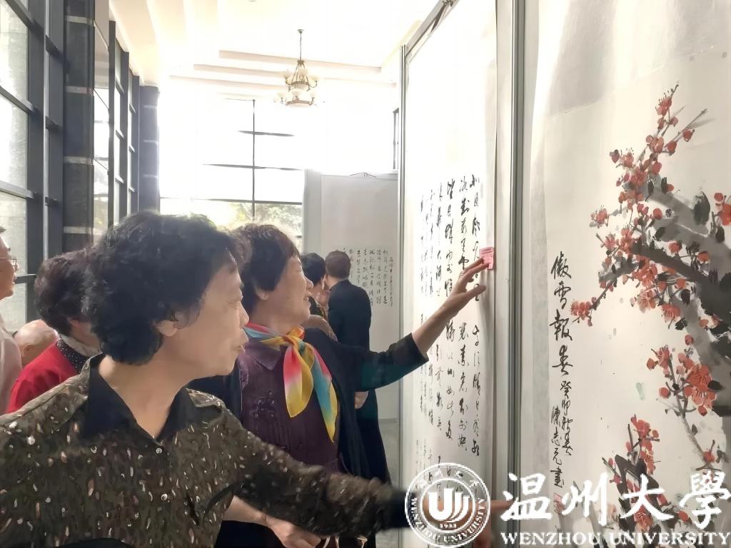 上午,校友们参观了校史馆、发绣馆,在档案馆杨兴林的带领和讲解下,校友们观看了一幅幅记载着学校发展历程的重要历史照片,回顾了母校办学90年以来的风雨历程,感受着母校波澜壮阔的发展变化,为母校日益壮大和蓬勃发展感到由衷的自豪和骄傲。游览了学校明心湖、国旗广场之后,校友们参观了为他们特意准备的温师校友会书画展。