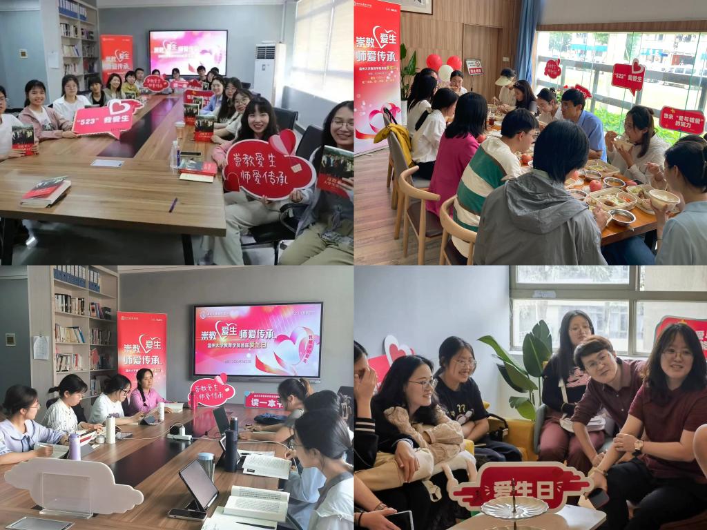 师爱如风,拂生心胸;师爱如露,润生心田;师爱如光,照生成长。在以后每年的5月23日,学院将以“爱生日”为契机,加强党政干部教师“走进教室、走进宿舍、走进食堂、走进活动”机制,强化师生沟通交流;组织开展党课团课,注重运用新媒体,全面了解、把握和引导学生思想动态;召开座谈会、谈心谈话,听取意见建议,及时解答问题,改进工作;策划开展第二课堂活动,助力学生梦想实践。让“爱生日”成为学院全员育人的一种表达,一种文化、一种品牌,温润学生心田,助力学生成长成才。