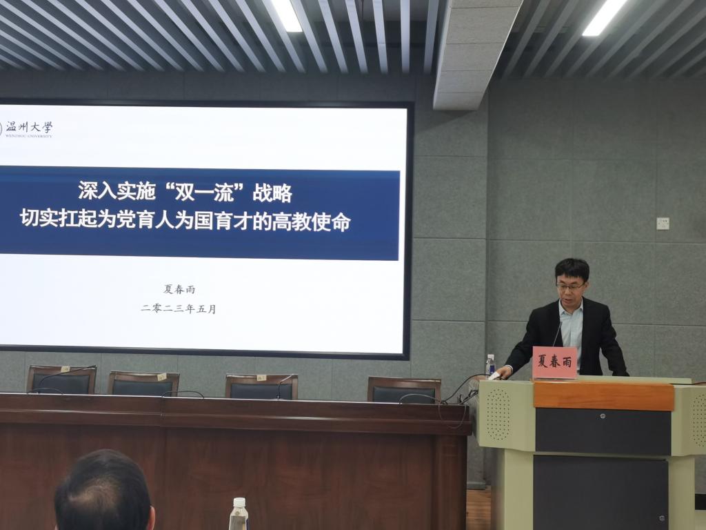 会议开展教师理论业务学习会。会议邀请校发展规划处处长夏春雨教授作《深入实施“双一流”战略 切实扛起为党育人、为国育才的高教使命》报告。夏处长从“党的二十大关于教育的论述与部署”“我国‘双一流’战略的背景与基础”“我国‘双一流’战略的基本概况”“新阶段我国‘双一流’战略建设要求”“新晋‘双一流’建设高校的启示与借鉴”等五个方面展开阐述,并就7所新晋高校情况作了重点介绍。