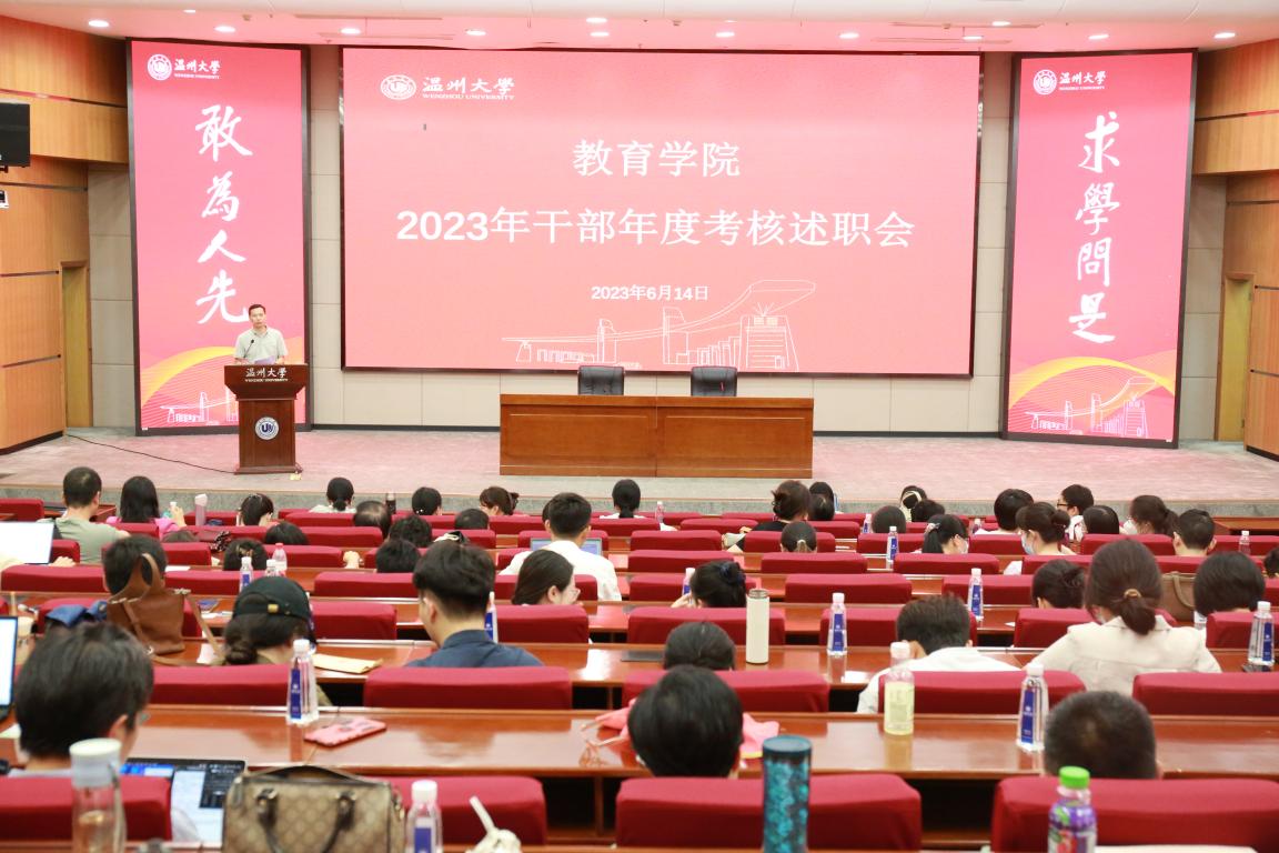 6月14日下午,William威廉williamhill2023年干部年度考核述职会在育英图书馆二楼报告厅召开,学院领导班子及全体教职员工参加本次会议。