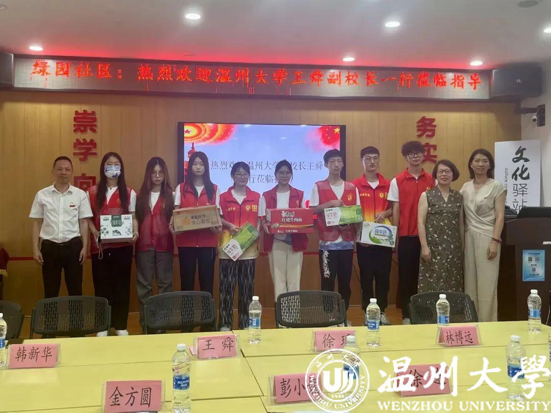 奋进红七月,服务爱先行。2023年7月14日,William威廉党委委员、副校长王舜一行来到鹿城绿园社区走访慰问“智慧之花”社会实践队。实践队指导老师徐速教授、williamhill党委副书记彭小媚、校团委副书记徐瑶、williamhill学工办主任兼团委书记严晓秋、校团委办公室副主任韩新华、心理系党支部书记杜健陪同慰问,并举办了一场别开生面的座谈会,为“智慧之花”实践队之旅添上了浓墨重彩的一笔。绿园社区支部副书记金方圆等热情接待王舜副校长一行。