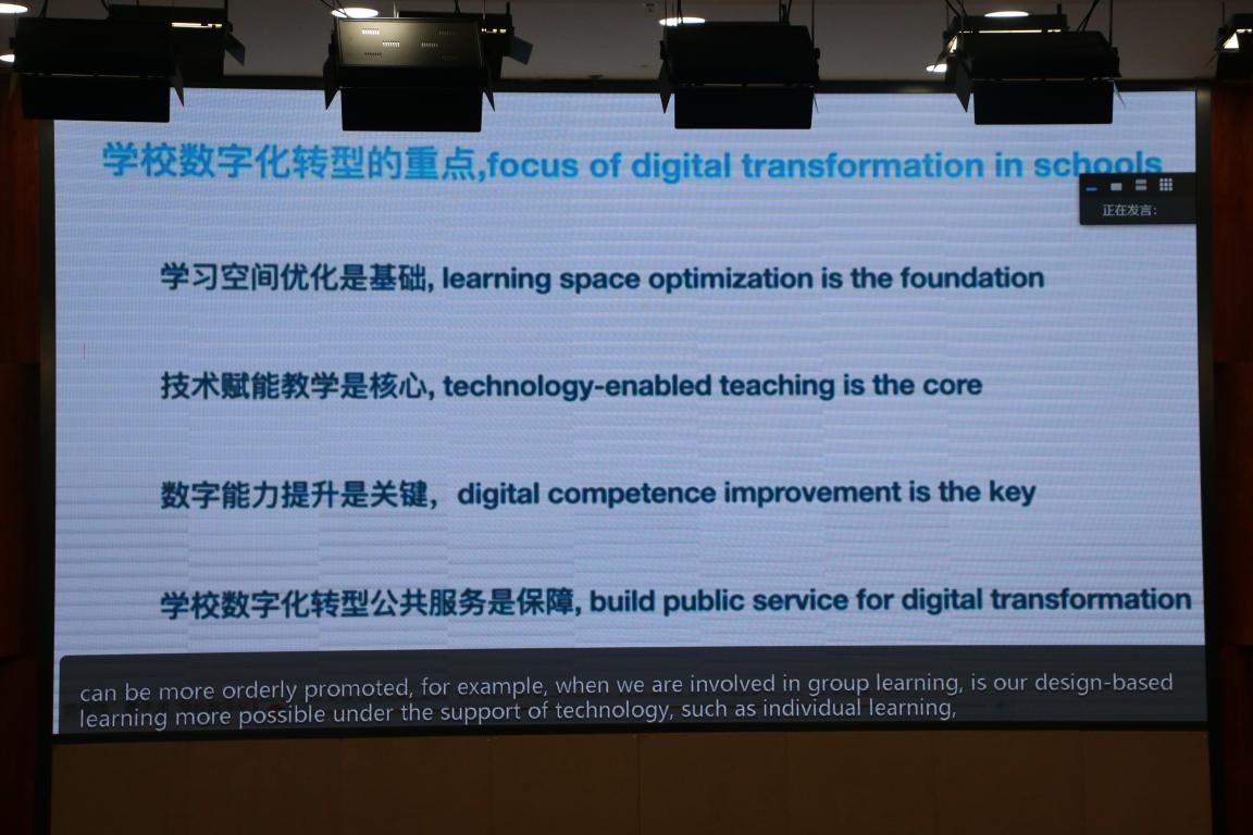 杭州师范大学经亨颐williamhill教授杨俊锋发表题为《教育数字化的国际理解与方向》的报告。他重点介绍了今年以来国际上有影响力的事件和报告,包括教育变革峰会报告、全球教育联盟在行动、欧盟数字教育行动计划进展报告等,并提出教育数字化的内涵和发展路径。
