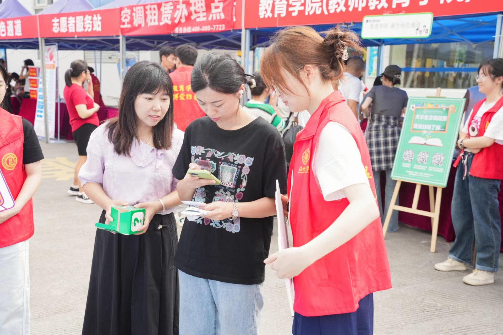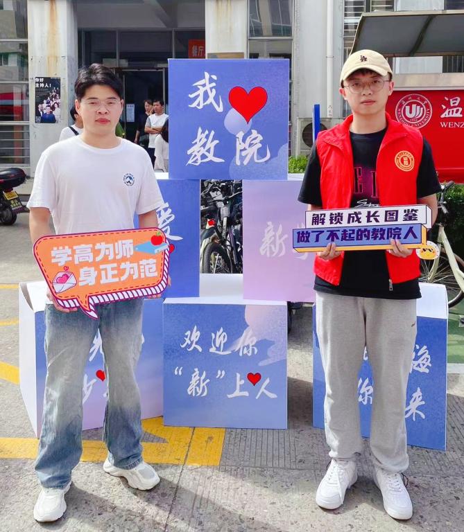 来教院,“博爱雅艺”盲盒任你抽,条条大路通罗马。新生现场抽取“盲盒”教院大礼包。它可以是“博”,同学们扫码即可从精心设计的书单中挑选一本自己最感兴趣的书籍;它可以是“爱”,这份大礼的幸运儿享有与优秀的学长学姐一对一帮扶学友计划;它可以是“雅”,小萌新们现场参与亚运知识竞答获取亚运吉祥物,学习亚运礼仪当好东道主;它也可以是“艺”,激励新生们提前参与师生工作坊、各项创新创业专项目团队,通艺创新,才艺全面,习得教学能力与素养。