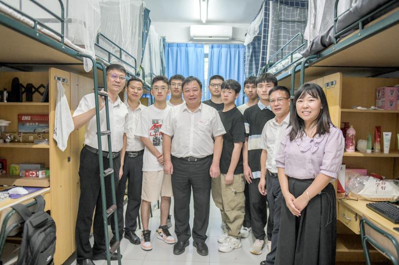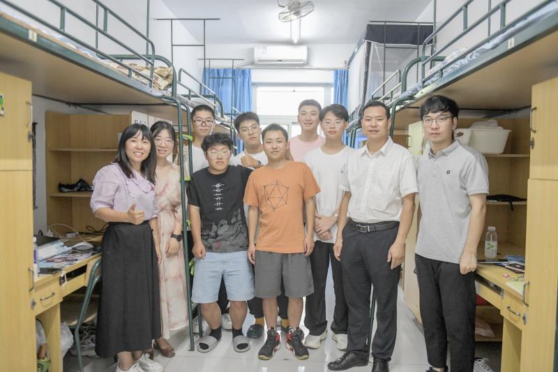 领导老师、班主任们走访寝室。期间,领导老师们亲切地和学生们进行沟通,一是悉心解答新生们提出的疑问,希望寝室同学互相帮助,并详细讲解宿舍规则;二是殷切嘱咐同学们安全第一,提高防诈骗意识,注意用电安全、食品安全、财产安全;三是引导同学积极表达自己所思所想,就学校初印象进行了交流,并祝福同学们能在温大收获成长。