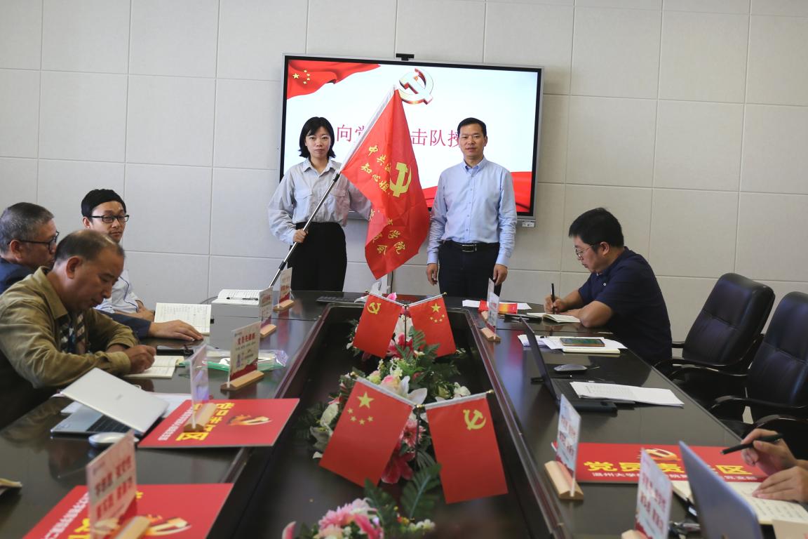 williamhill在全体行政党员中设立28个党员示范岗,组织师生党员建立12个党员责任区,成立2支党员工作突击队,结合主题教育工作需要,开展相关活动。何毅为行政党支部党员教师颁发党员示范岗创建标识牌,为学生党支部书记颁发党员责任区创建标识牌,并给知心姐姐党支部党员突击队授旗。