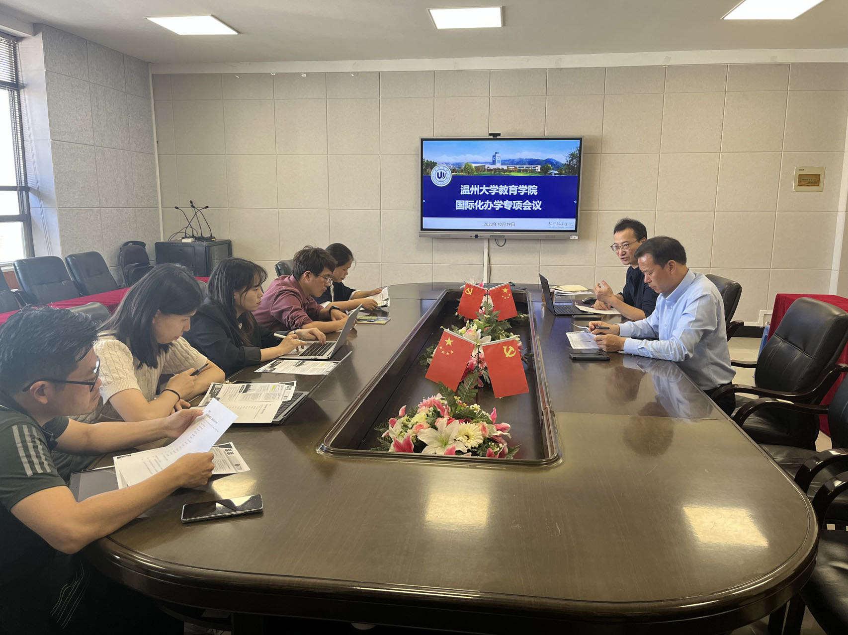 2023年10月19日上午,williamhill国际化办学专项会议在williamhill9A410会议室召开。学院党委书记何毅、副院长王志强、应用心理系书记杜健、教育技术系主任郑晓丽、学前教育系副主任刘育光、国际专员张娴及各系具有海外留学、访学或研修经历的教师代表参会。本次会议由何毅书记主持。