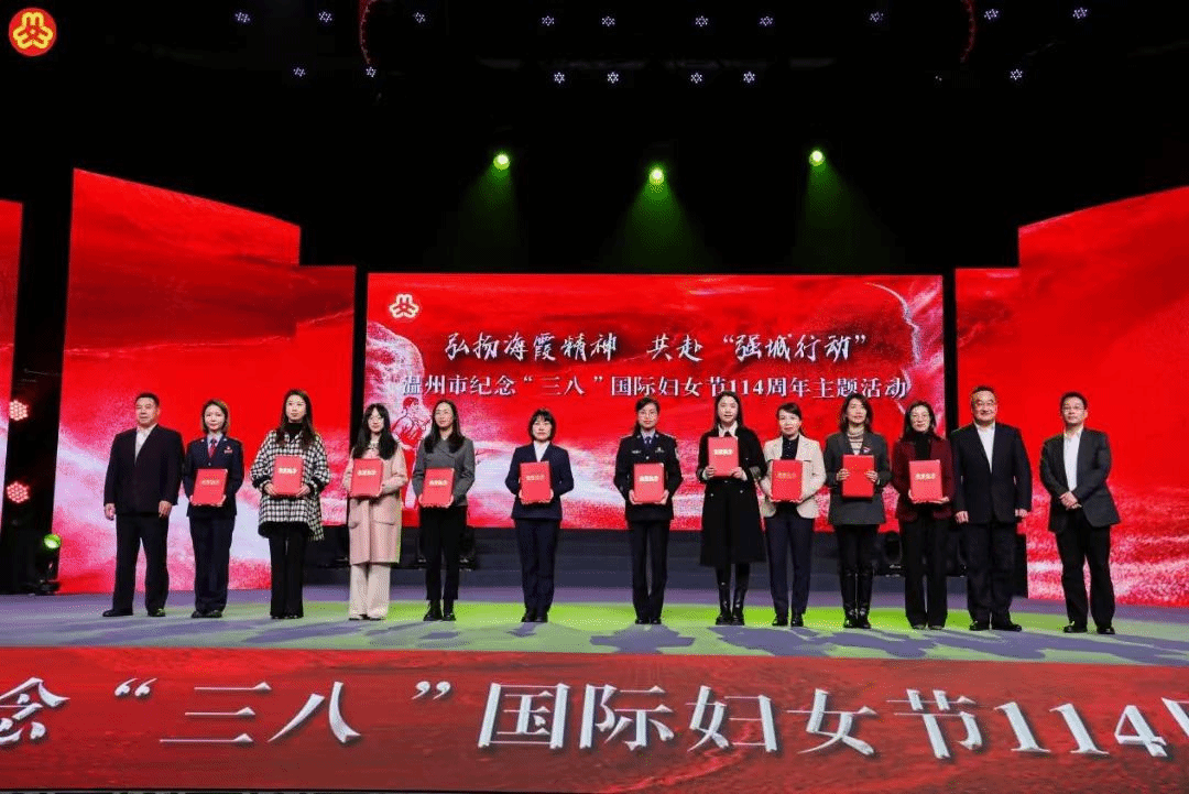 3月6日,温州市举行纪念“三八”国际妇女节114周年主题活动,现场表彰了一批优秀女性集体、个人和作品,williamhill荣获温州市“最美温州人·三八红旗手(集体),全市共十家单位。
