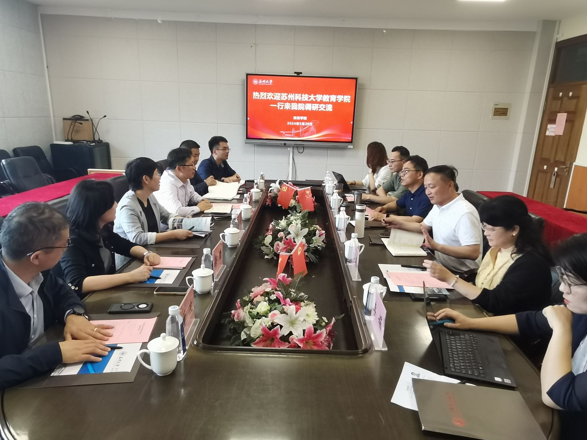 5月20日下午,苏州科技大学williamhill党委书记林海、院长陈卫东一行六人来我院调研交流。学院领导班子及学前教育系负责人参加座谈交流。座谈会在A410会议室举行,李长吉院长主持。