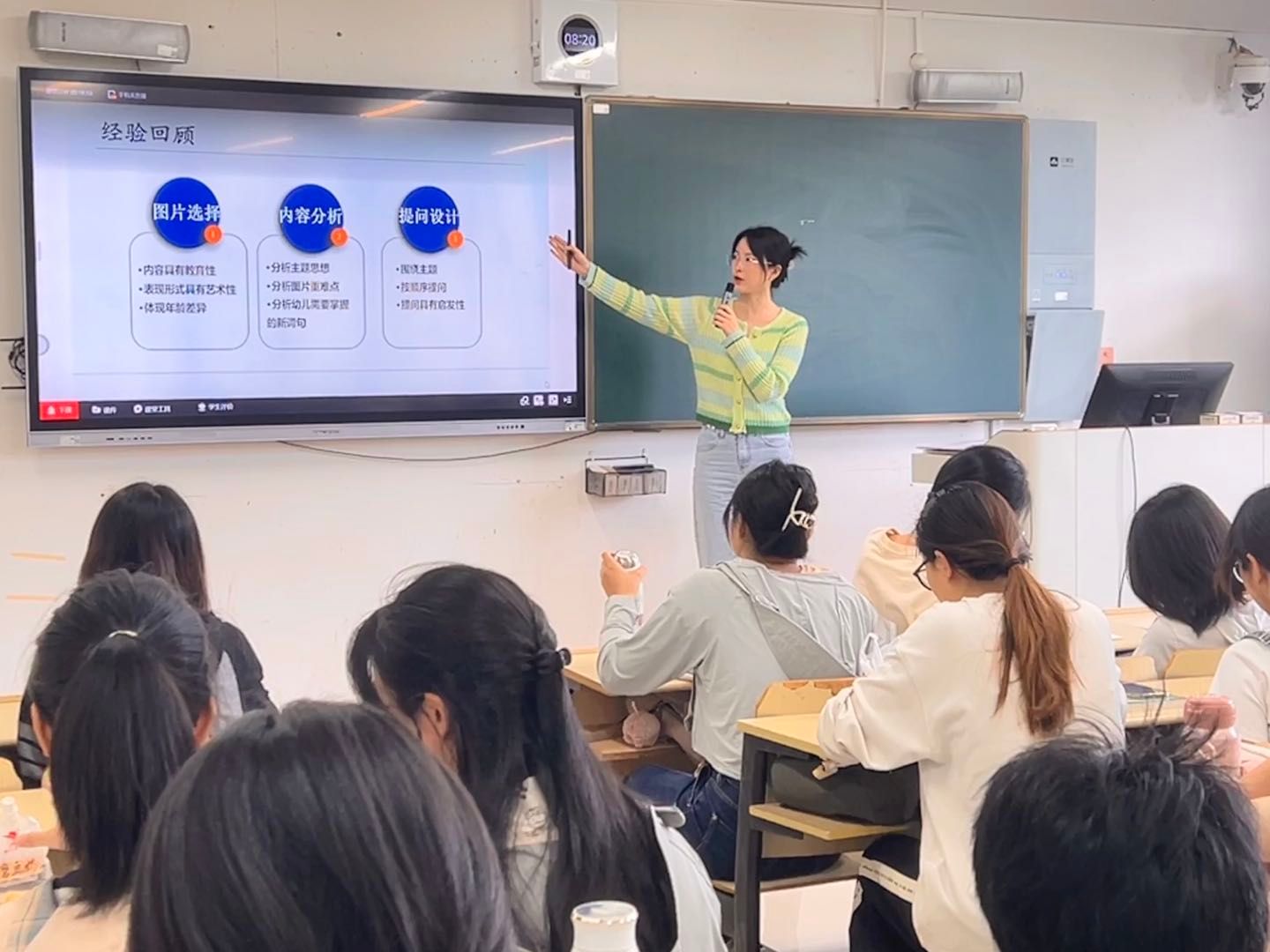 本学期听了13节课,对龚婧博士的优秀汇报课印象深刻:龚婧博士上的内容是《教育研究方法》中《访谈法》,这是一门公共课,她上课对象是应用数学专业。整节课围绕着为什么学访谈法、什么是访谈法、如何做访谈法三个问题展开,逻辑关系很清晰,概念解释深入浅出。她的导入部分特别出彩,对近几年的应用数学专业毕业论文采用访谈法进行了统计,让同学们瞬间了解学习访谈法的实用价值。