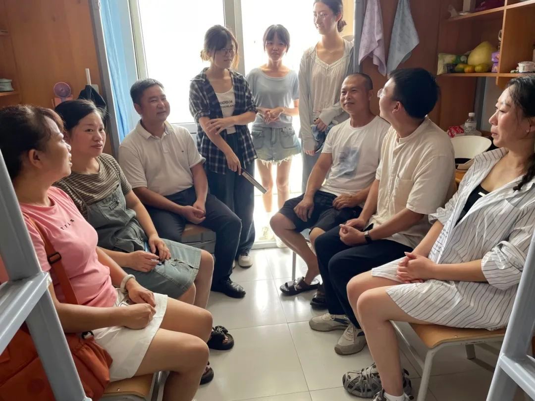领导老师、辅导员们走访寝室。期间,领导老师们亲切地和学生们进行沟通,一是悉心解答新生们提出的疑问,希望寝室同学互相帮助,并详细讲解宿舍规则;二是殷切嘱咐同学们安全第一,提高防诈骗意识,注意用电安全、食品安全、财产安全;三是引导同学积极表达自己所思所想,就学校初印象进行了交流,并祝福同学们能在温大收获成长。