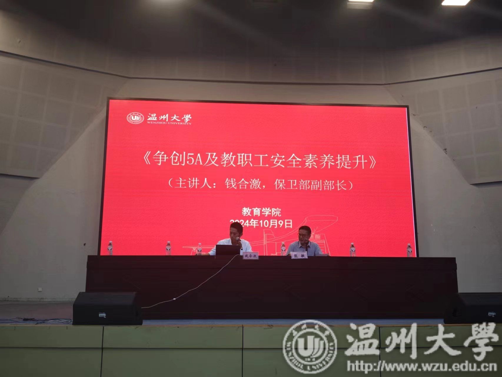 10月9日下午,应我院邀请,校党委安全保卫部副部长钱合激老师在南校区9号楼报告厅为我院全体教职工讲授《争创5A及教职工安全素养提升》教职工安全教育大课。