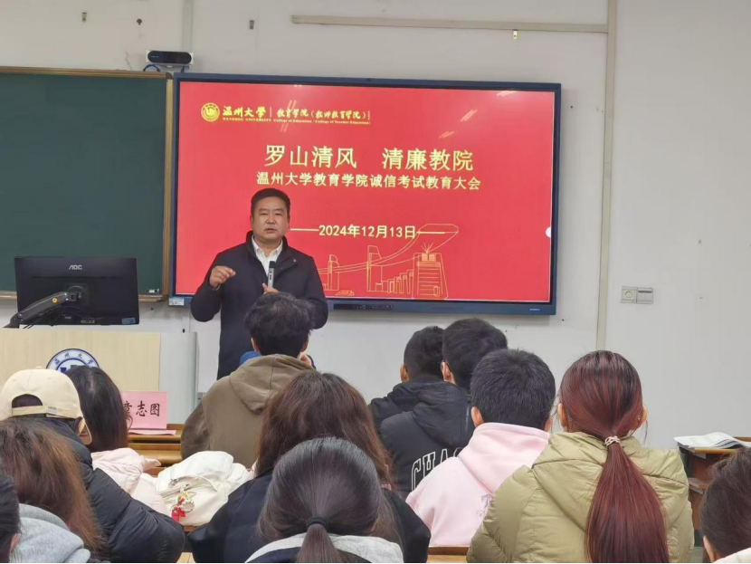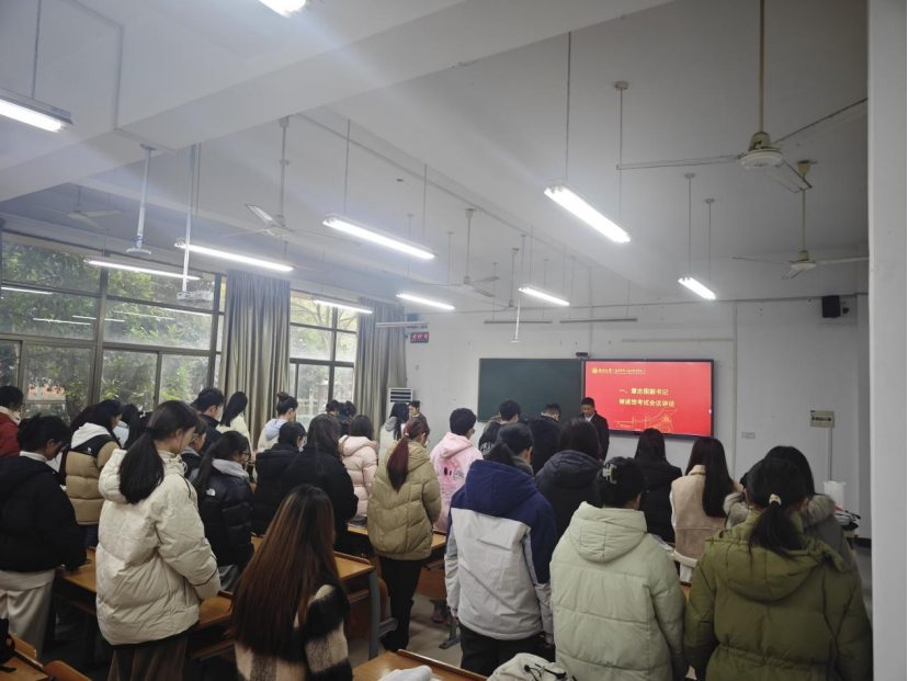 诚信是中华民族的传统美德。为进一步加强教院学子考风考纪教育,营造公平、公正、诚实、守信的考试环境,促进我院学风建设,12月13日中午,我院举行以“罗山清风 清廉教院”为主题的诚信考试教育大会。学院党委副书记、纪委书记章志图,辅导员李金伟,各班纪检委员参加会议。