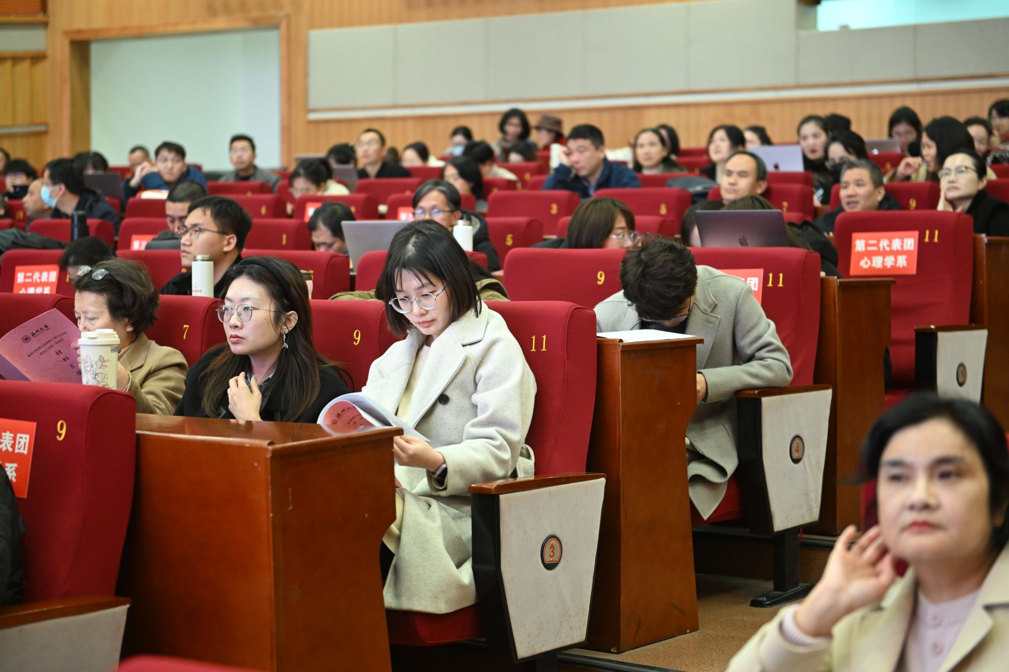 会议最后,张敏书记总结讲话。他指出,此次双代会是在学院发展关键时期召开的一次重要会议,也是学院健全民主管理体制机制、提升教工民主决策、民主管理、民主监督的一次重要会议。学院将以此为契机,聚焦学校年度工作主题主线,围绕学院争取教育博士学位授权点这个核心工作,统筹攻坚八个重点项目和八个领域主要任务,全力推进学院高质量内涵式发展。他希望全体教职工提高政治站位,认真学习习近平新时代中国特色社会主义思想,提升政治理论素养,自觉践行教育家精神,努力做到既做经师又做人师;继续发扬主人翁精神,立足本职岗位,扎实工作,努力创新,持续为学院高质量发展贡献力量;希望院内各系各科室党组织和学院工会切实加强自身建设,不断提高服务教职工的能力和水平。张敏书记号召全院上下团结一心、锐意进取、携手并进、不断开创学院事业发展的新篇章。(摄影 胡铸鑫)