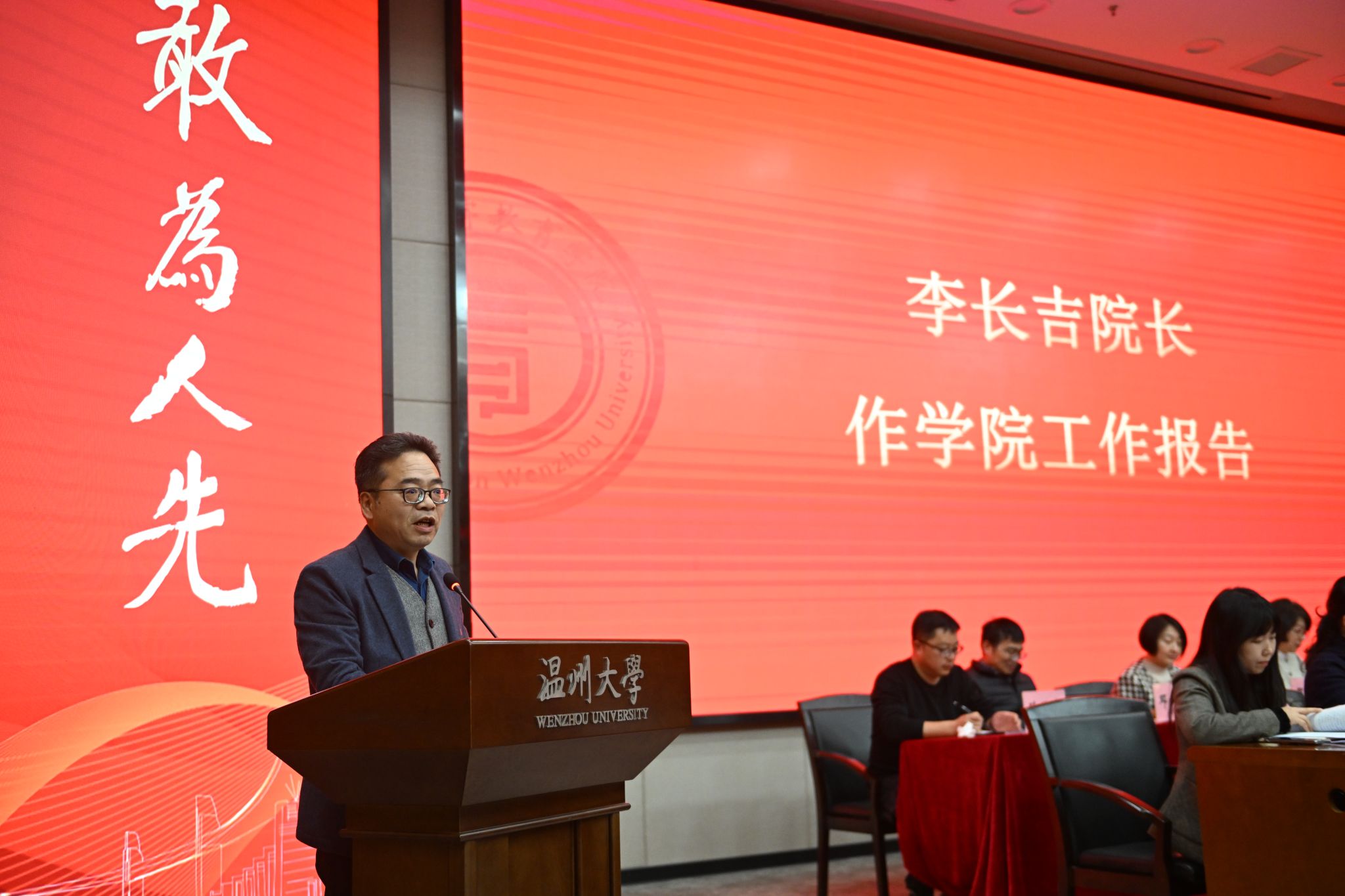 李长吉院长以《凝心聚力铸辉煌 接续奋斗启新篇》为主题做2024年学院工作报告。他系统回顾学院2024年度的主要工作和取得的成绩,并向全体教职员工的辛勤付出和无私奉献表示感谢。他指出,学院2024年人才引育成效显著、学科科研稳步前行、本科教学持续深化、人才培养亮点纷呈、服务地方彰显担当、文化建设凝聚人心、党建工作筑基固本,同时也指出学院发展面临的困难与挑战,并对学院2025年度工作做了总体部署安排。学院将紧紧围绕教育博士学位授权点申报和省一流学科建设,继续加大引育高层次人才,培育标志性成果,加强高质量学科体系构建,推动学院各项工作再上新台阶。
