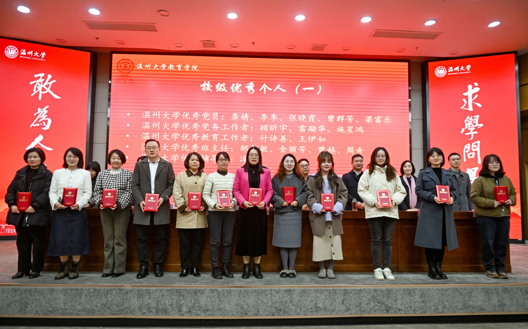 学院领导为2024年度校优秀党员、优秀党务工作者、优秀教育工作者、优秀教师等荣誉获得者进行表彰。