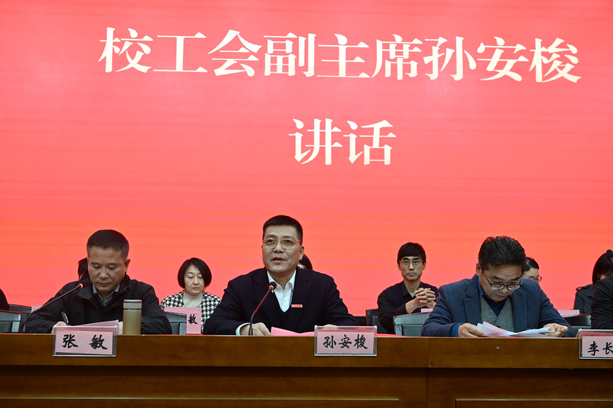 校工会副主席孙安梭出席并讲话。他指出,过去一年,williamhill在人才培养、学科建设、科学研究、社会服务等方面取得了丰硕成果,成绩的取得是学院党政班子科学谋划的结果,更是全体教职工团结奋斗的结晶。他代表学校工会提出三点希望,一是坚持党的领导,确保政治方向;二是聚焦主责主业,服务发展大局;三是坚持以人为本,维护教师权益。孙主席表示,学校工会将始终与学院同心同行,充分发挥桥梁纽带作用,全力支持学院改革发展与民主建设。