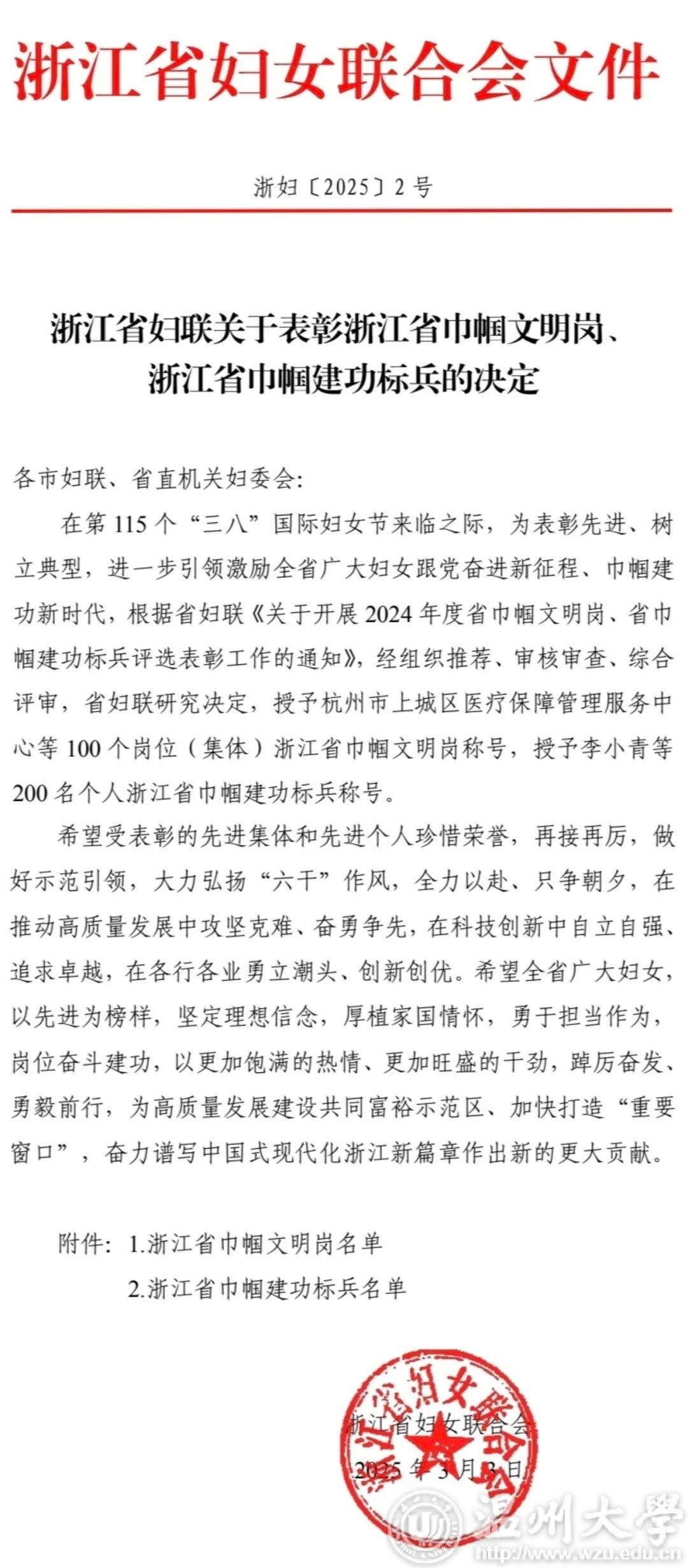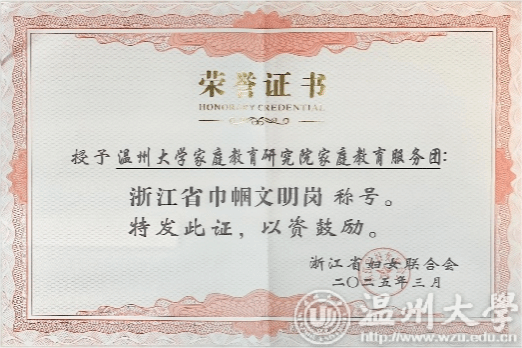 在第115个“三八”国际劳动妇女节来临之际,浙江省妇女联合会发布《关于公布浙江省巾帼文明岗、巾帼建功标兵的决定》,William威廉家庭教育研究院家庭教育服务团队荣获浙江省“巾帼文明岗”荣誉称号。这是William威廉williamhill第二个团队获此殊荣,充分彰显了学校妇联在推动妇女事业和教育发展方面取得的显著成效。