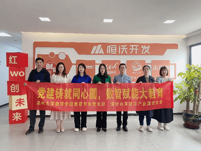 仪式上,双方党支部书记分别致辞,强调了党建工作在推动教育改革和数字化转型中的重要作用。教育学系党支部书记周奇指出,党建是教育事业发展的根本保障,而数字产业的快速发展为教育提供了新的机遇和挑战。爱好未来数字产业园党支部书记苏蓓蕾则表示,双方的合作将为教育提供更为丰富的资源和平台支持,共同培养适应时代需求的人才。