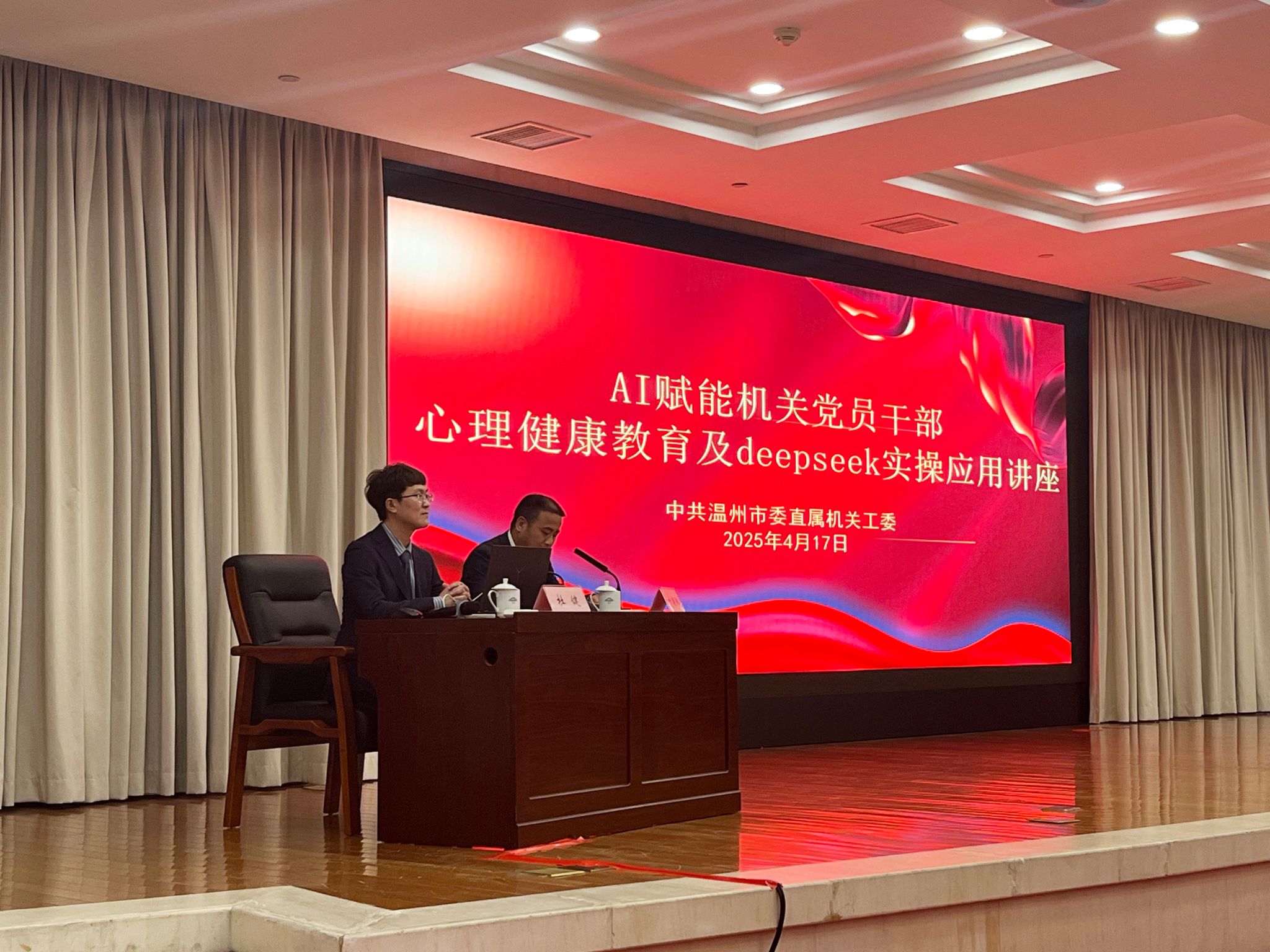 在数字化浪潮席卷全球的今天,机关党员干部既是社会发展的中坚力量,也是高压工作的典型群体。调查显示,公务员中存在不同程度的职业倦怠、心理压力及睡眠障碍等问题。工作节奏快、考核任务重、群众期待高,让心理健康成为影响干部队伍效能的关键阻力。与此同时,人工智能技术的飞速发展为心理健康服务注入了全新动能——从精准测评到智能干预,AI正悄然重塑心理服务的边界。在此背景下,4月17日下午,我院心理学系教师杜健博士受温州市委直属机关工委邀请,为90所市直单位的300余名党员干部进行了AI赋能公务员心理健康讲座。