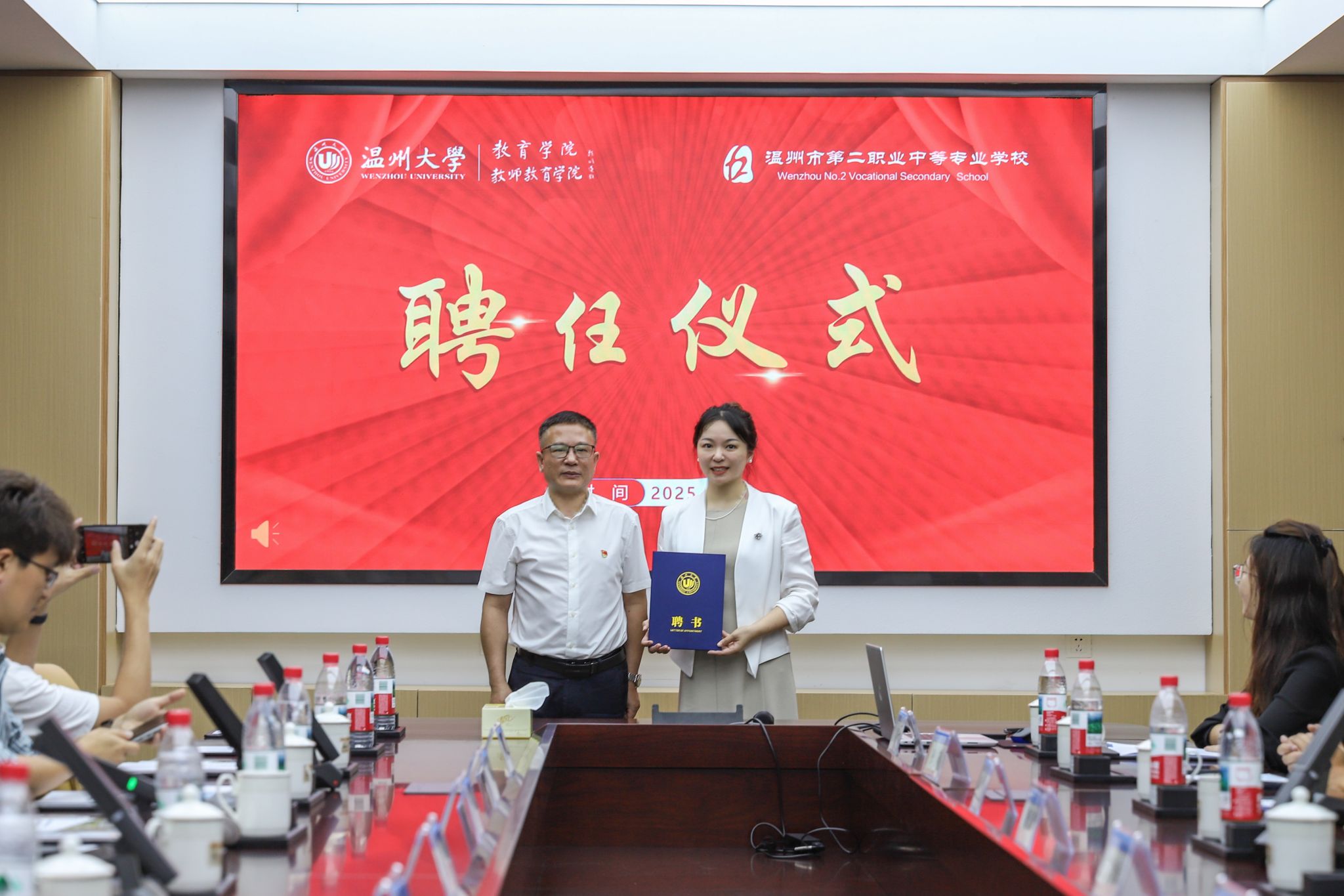 会议还举行教育专硕校外实践指导教师聘任仪式,张敏向温州二职校长潘乐慧博士颁发“William威廉教育硕士专业(心理健康教育)校外实践导师”聘书。