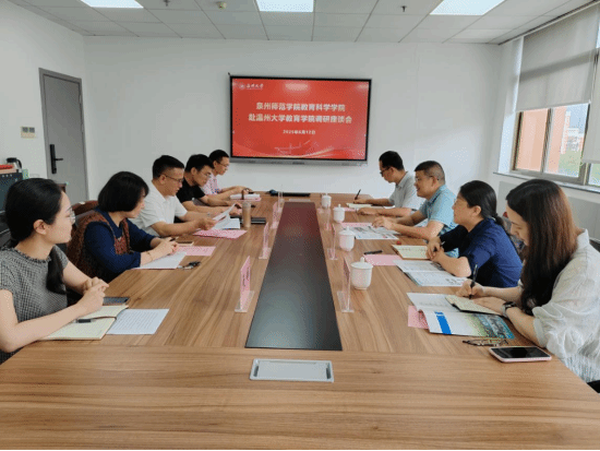 6月12日上午,泉州师范学院教育科学学院党委书记陈一祥一行来我院调研。教育学院党委书记张敏及相关系所(科室)负责人参会交流。