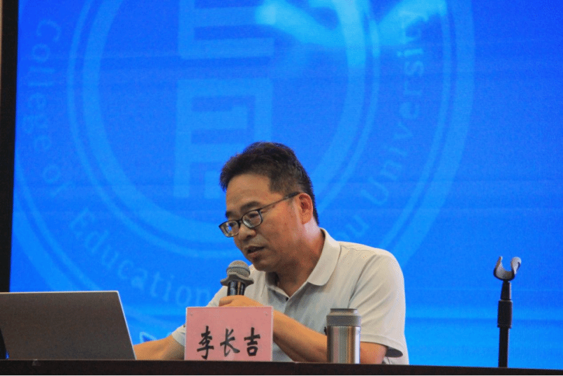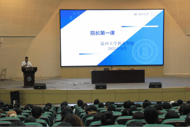 李长吉老师为全体新生带来了意义深远的院长第一课。他从我院发展历程与办学特色、专业与学科学位点、学生竞赛、特色文化、院长寄语五个部分进行介绍,从办学传承、师资队伍、学科建设、科学研究、专业建设、人才培养、特色文化、服务地方、国际合作等多个方面给新生展示了教院的历史悠久、教院的规模庞大,教院的办学层次全,教院的办学实力强,教院的师范特色突出,教院的办学质量优秀等多个优势。最后,李长吉老师以叶适老师的一句话作为结尾:“读书不知接统绪,虽多无益也;为文不能关教事,虽工无益也;笃行而不合于大义,虽高无益也;立志不存于忧世,虽仁无益也。”这句跨越千年的箴言,更如一盏明灯,为新生们指明了“读书、为文、笃行、立志”的方向,引导他们将个人成长与时代使命、教育事业紧密相连。
